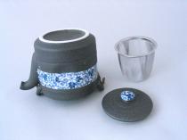 黒伊賀唐草筒型土瓶(アミ付)