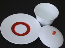 赤巻小蓋物皿付